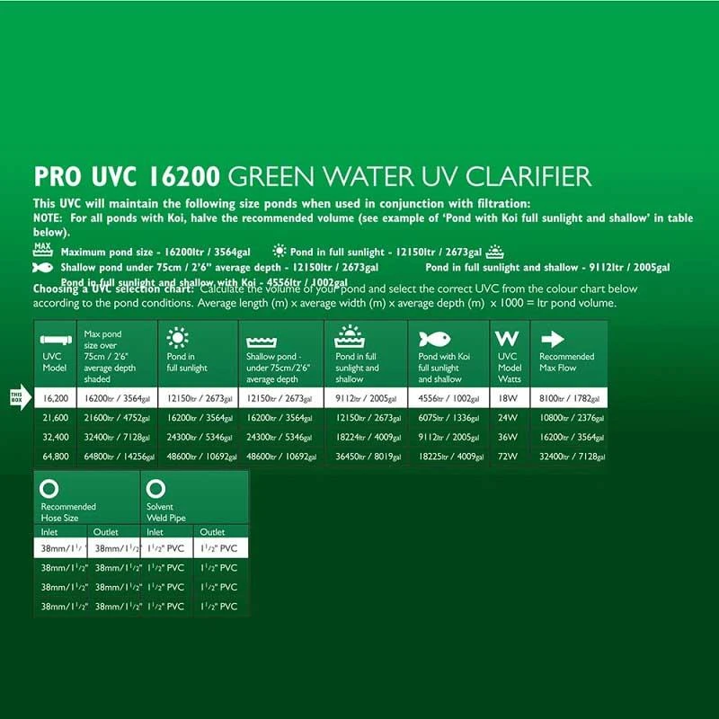 The Pro UVC with 18w will keep a larger pond clear from free floating algae to prevent green water. The algae is exposed to the uv light killing it and clumping it together making it easy for your filter to trap the larger particles to be digested by the beneficial filter bacteria. The unit is supplied with a multi stepped hose tail or a rigid connector to take 1.5 inch solvent weld pipe. The blagdon pro uv’s have a unique expandable system.