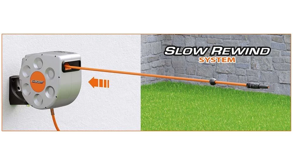 The Claber 20m Rotoroll Evolution is the newest up to date version of the automatic hose reels with a modern design and a new slow rewind mechanism that allows the hose to wind back up easily and safely. The automatic rewinding hose reel has a 180 degree swinging wall bracket for easy movement and can have a padlock fitted for security. The hose reel comes ready to use out of the box with 20 metres of non-deformable, anti-friction hose for quick smooth rewinding. Comes complete with tap extension hose, tap connector, spray nozzle and couplings.